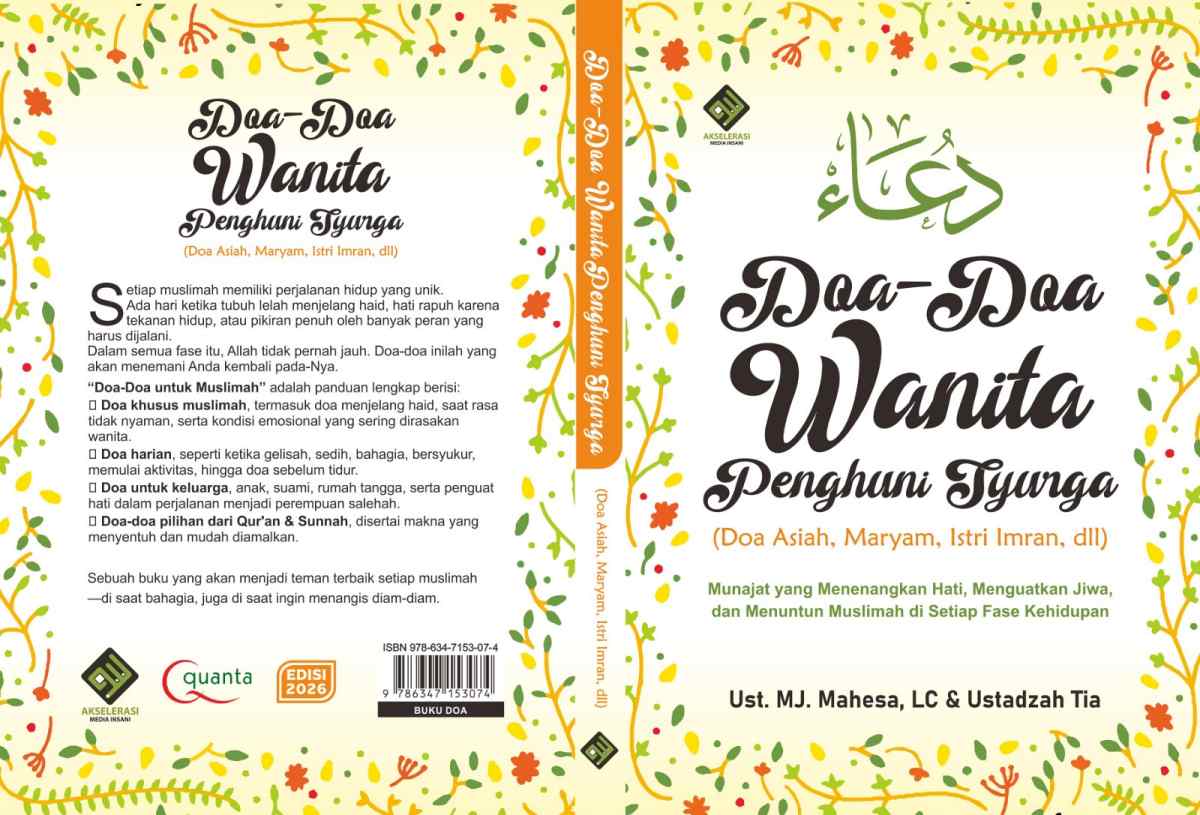 Buku ini berjudul “Doa-Doa Wanita Penghuni Syurga”, disusun agar pembaca dapat meneladani doa-doa yang penuh makna, sarat keikhlasan, serta berlandaskan wahyu. Semoga dengan menghadirkan doa-doa tersebut, hati kita semakin tunduk kepada Allah, hidup dipenuhi keberkahan, dan akhir perjalanan kita ditutup dengan husnul khatimah. Aamiin. Wallahu waliyyut-taufiq.